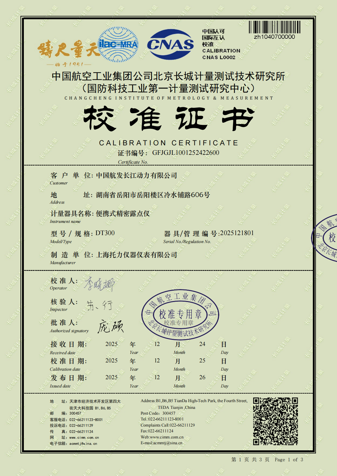 计量校准证书